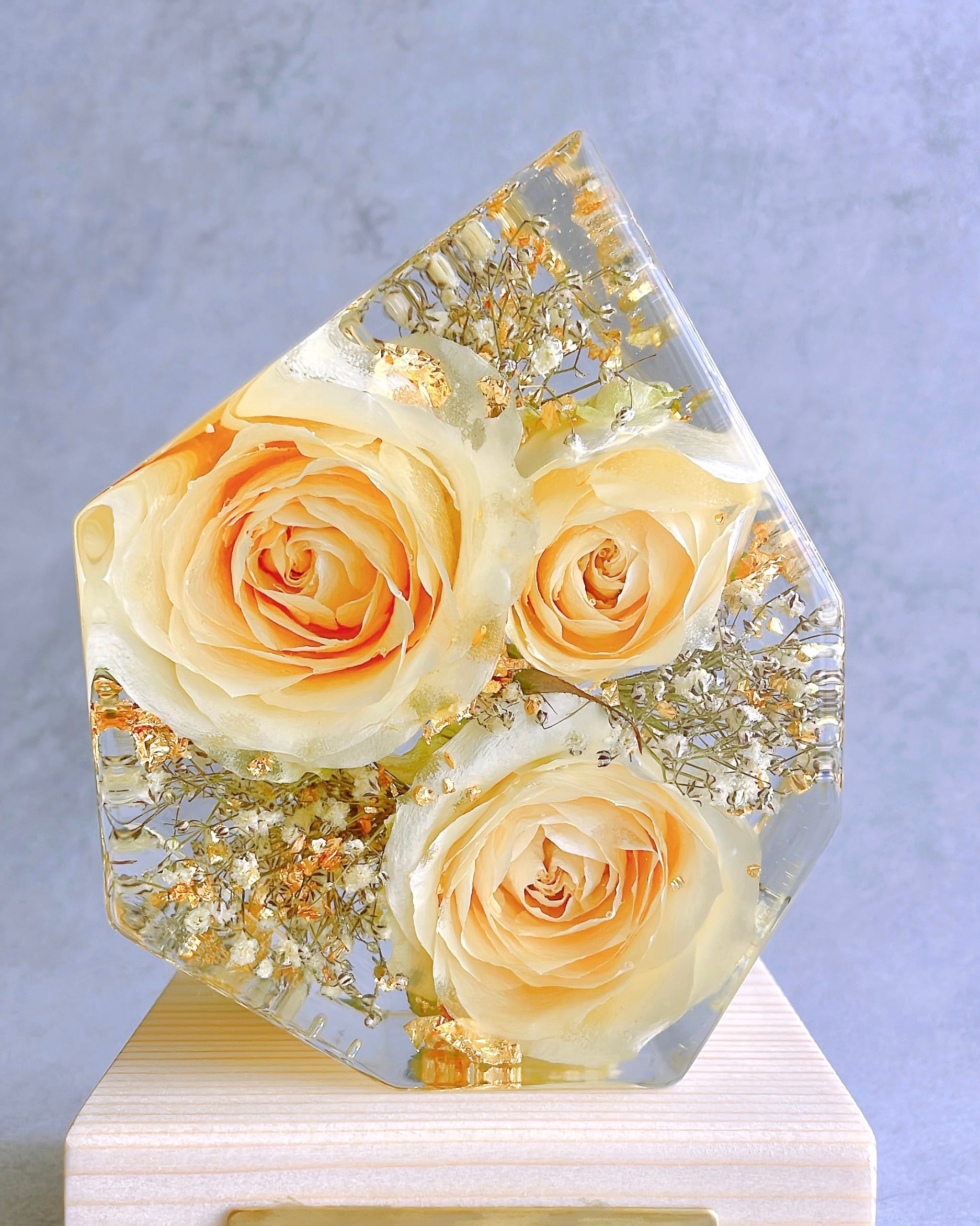♦︎経年劣化でレジンやお花がゆっくり薄くなります。直射日光や高温多湿を避けて飾っていただくことで永く美しい状態を保てます